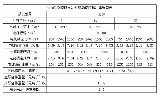 HQ80系列參數(shù)表:
