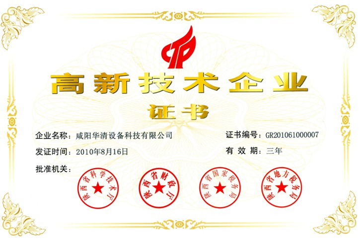 根據(jù)國家2008年對高新技術(shù)企業(yè)重新審核認(rèn)定文件(國科發(fā)火【2008】172號)、《高新技術(shù)企業(yè)認(rèn)定管理工作指引》(國科發(fā)火【2008】362號)的要求,公司通過認(rèn)真的自查和充分的準(zhǔn)備,2009年10月通過咸陽市科技局提交了陜西省高新技術(shù)企業(yè)認(rèn)定申報資料,經(jīng)陜西省高新技術(shù)企業(yè)認(rèn)定管理工作領(lǐng)導(dǎo)小組辦公室組織專家評審,并報全國高新技術(shù)企業(yè)認(rèn)定管理工作領(lǐng)導(dǎo)小組辦公室備案,2010年8月16日我公司正式被認(rèn)定為陜西省高新技術(shù)企業(yè)。